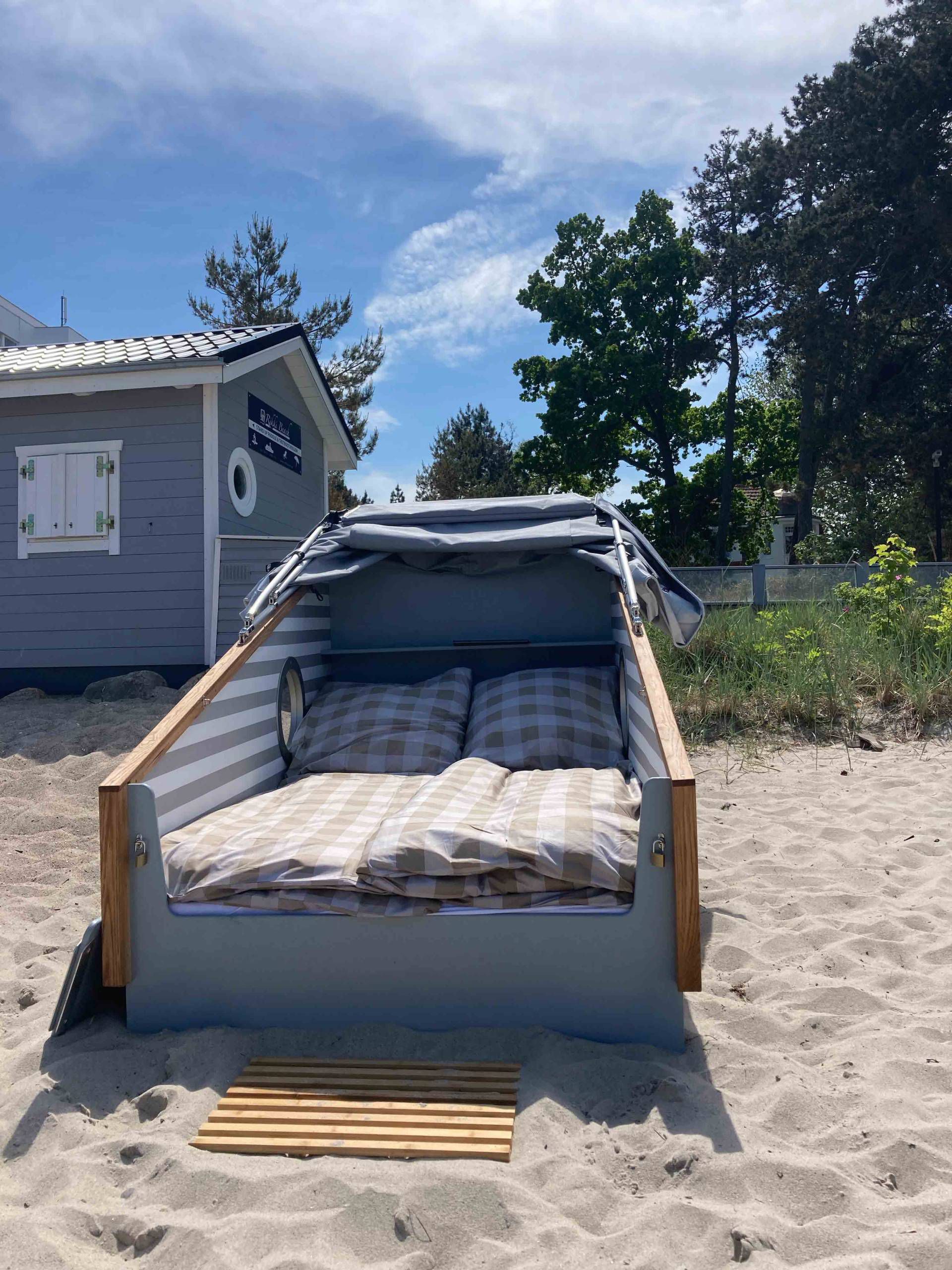 Als Strandschläfer können Sie unseren Korb von 15:00 Uhr- 10:00 Uhr am Folgetag nutzen. Sie schlafen in gemütlicher Bettwäsche.