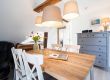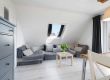 - Wohnzimmer: Das nach Süden ausgerichtete Wohnzimmer verfügt über ein Schlafsofa, einen großen Esstisch mit sechs Stühlen und einen Fernseher.