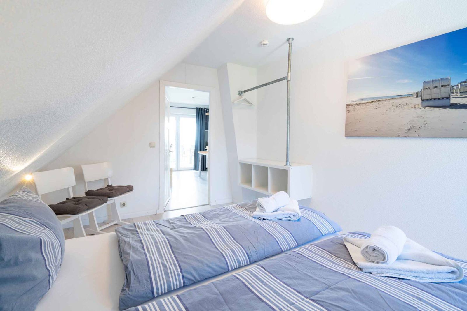 Unsere neu renovierte 3-Zimmer-Ferienwohnung bietet eine komfortable und gemütliche Unterkunft für Familien und Paare. Die Wohnung befindet sich im 2. Obergeschoss eines Hauses, das in einer verkehrsberuhigten Straße liegt, nur 250 Meter vom Strand entfernt.