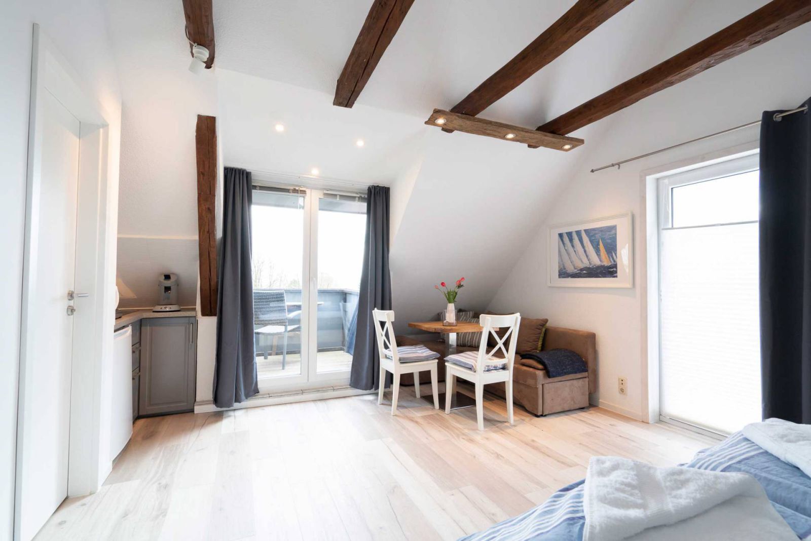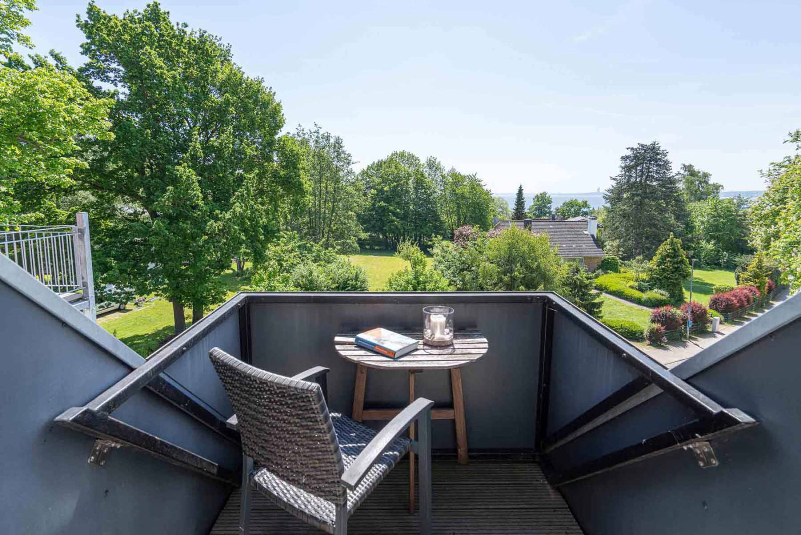 Zwei optimal ausgerichtete Balkone (Südost und Südwest) laden zum Verweilen ein und bieten einen herrlichen Teilblick auf die Ostsee.