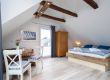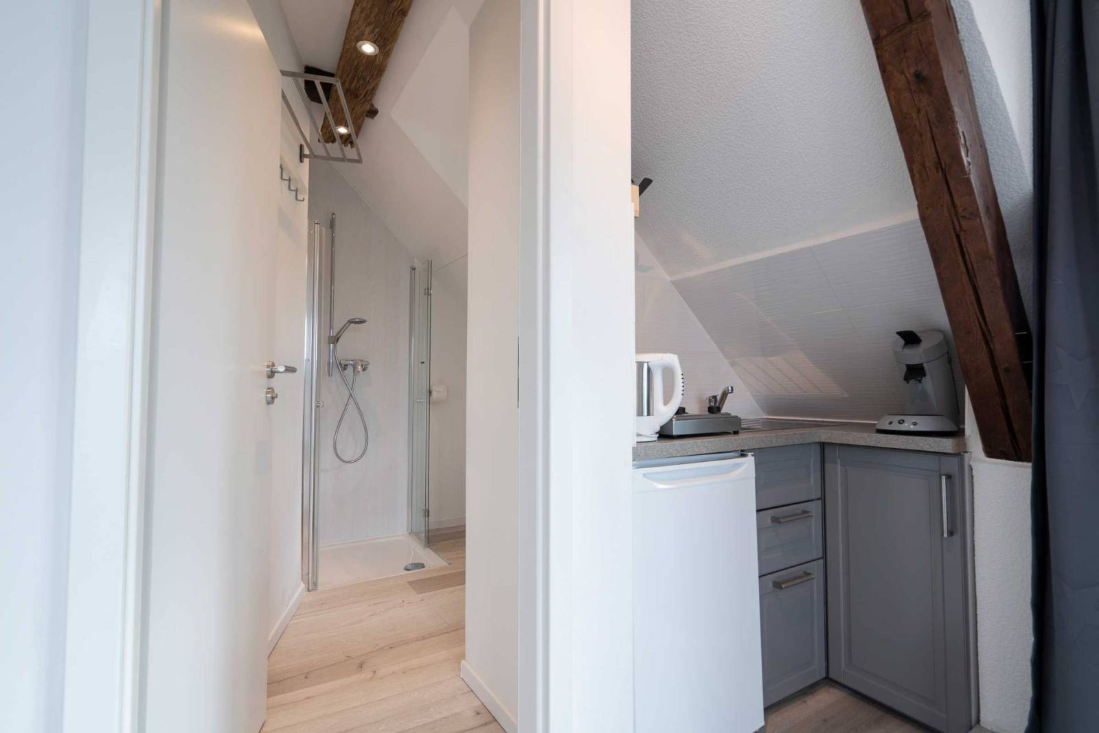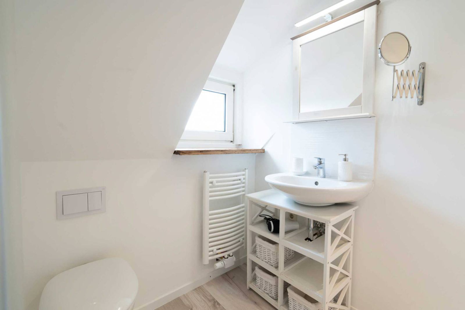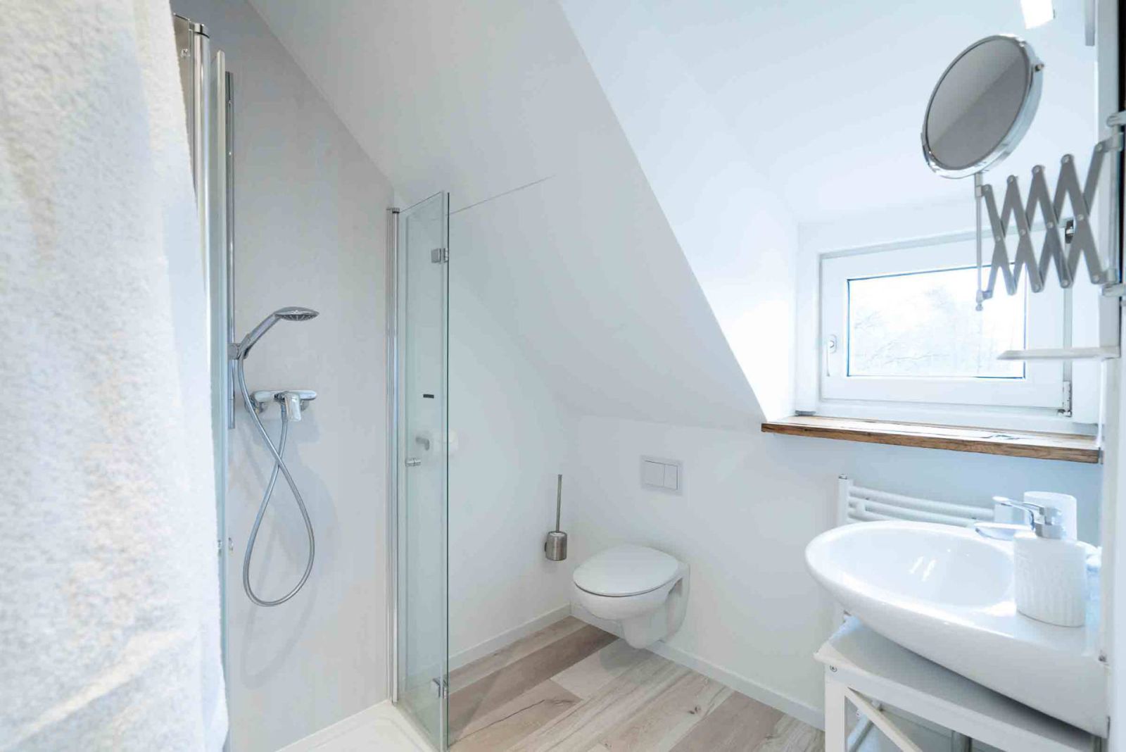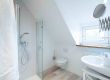 Das geschmackvolle Badezimmer ist in die Dachschräge integriert und bietet: