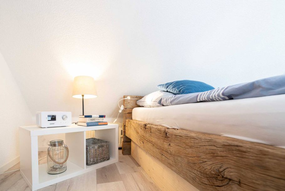 Unsere liebevoll als "Bugkorb" bezeichnete Ferienwohnung im 2. Obergeschoss bietet ein gemütliches Refugium für zwei Personen, nur 250 Meter vom Strand entfernt. Die Wohnung ist frisch renoviert und modern eingerichtet, ideal für einen erholsamen Aufenthalt an der Küste.