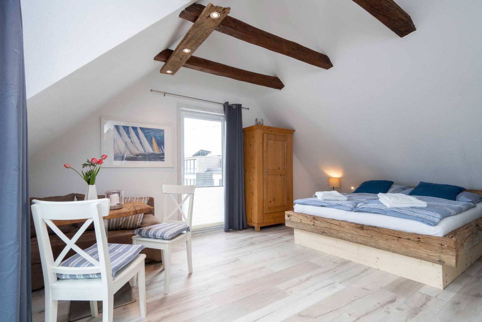 - Schlafbereich: Ein komfortables Doppelbett (160 cm breit) sorgt für entspannte Nächte.