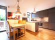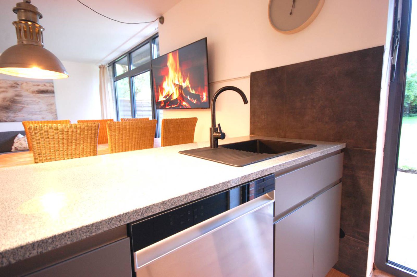Erdgeschoss: Im hellen Wohnzimmer mit gemütlicher Sitzecke können Sie entspannte Abende genießen. Der offene Essbereich mit großem Tisch bietet reichlich Platz für gemeinsame Mahlzeiten. Die moderne Küche ist komplett ausgestattet – inklusive Backofen, Mikrowelle, Spülmaschine, Kühl-Gefrierkombination und eleganter Granitarbeitsfläche – ideal für alle, die gerne kochen.