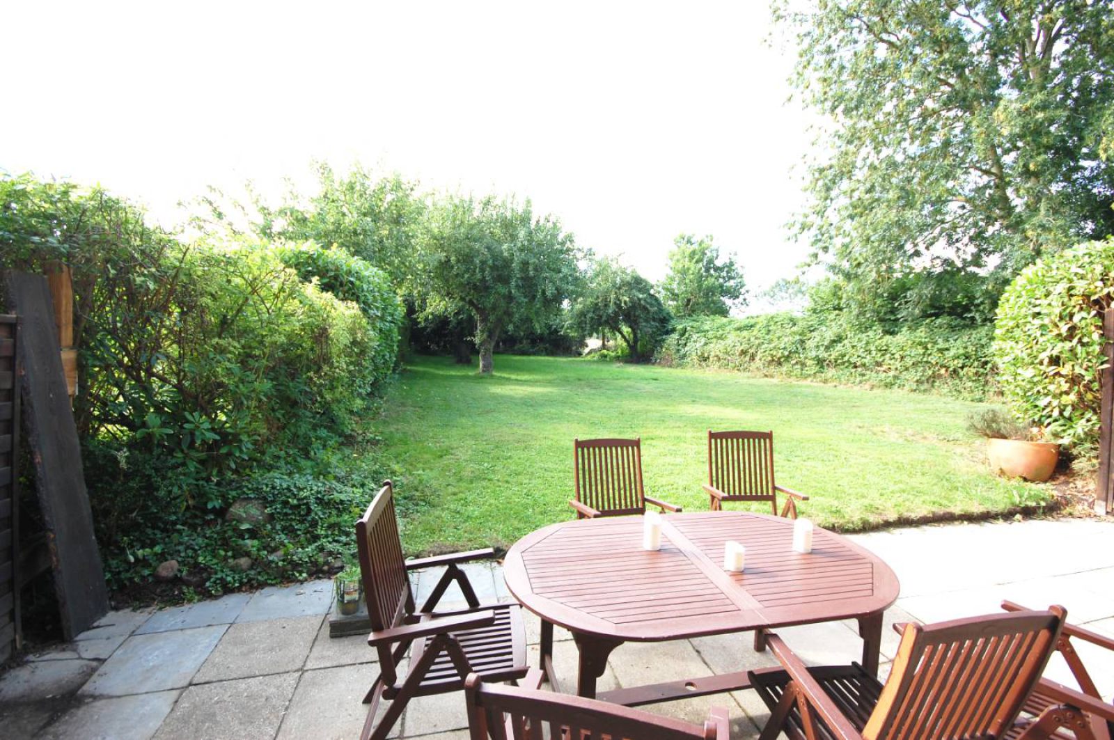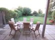 Die eingefasste Terrasse ist hinter dem Haus (Ausrichtung Südwest) und mit Tisch und 6 Stühlen, Grill ausgestattet . Mit großem Garten und Apfelbäumen.