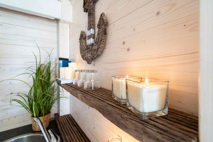 Ein besonderes Highlight ist die kleine Teeküche, in der du dich nach dem Saunagang mit einer heißen Tasse Tee aufwärmen kannst. Für die perfekte Erfrischung sorgt die Außendusche mit Sichtschutz – hier genießt du das Gefühl von Freiheit und Naturverbundenheit in absoluter Privatsphäre. Erlebe die wohltuende Wärme, den Duft von Holz und die beruhigende Nähe zum Wasser. Die Bootshaus-Sauna ist der ideale Rückzugsort für pure Erholung und maritime Gelassenheit.